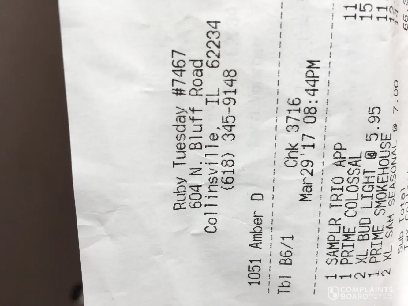 My wife and I went to Store #5013 Blue Ash, Oh on check #4544 on April 7, 2017 at 6:17 PM. I told the waitress that I would order a small chicken tender dinner and the additional salad bar for $3.99 I would share with my wife. When the bill came, I was charged $9.99 for my wife's salad bar. The waitress said she would fix the issue. The manager returned and said that because I ordered the salad bar separately and therefore had to charge $9.99 for the item according to Ruby Tuesday Policy. There is nothing stated on the menu, that says you can not split a meal.