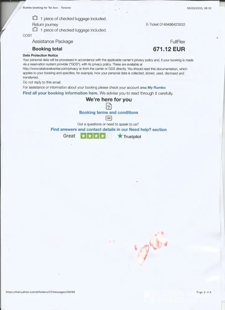 My Name is Fadare Moses, from Nigeria I purchased ticket from rumbo website on 8th of March 2020 with my family here are the family Names ( FADARE MOSES)FADARE (TEMILOLA AYOBISI) FADARE EMMANUEL ENIOLA) FADARE EMMANUELLA AYOBAMI) from lagos to Istanbul- Istanbul to Gatwick airport London. and they did not send me the confirmation of my ticket, when i got to my bank they said the transaction was successful and my money was deducted from my account here is my email. [protected]@yahoo.com. please kindly get back to me before i charge the case to court.