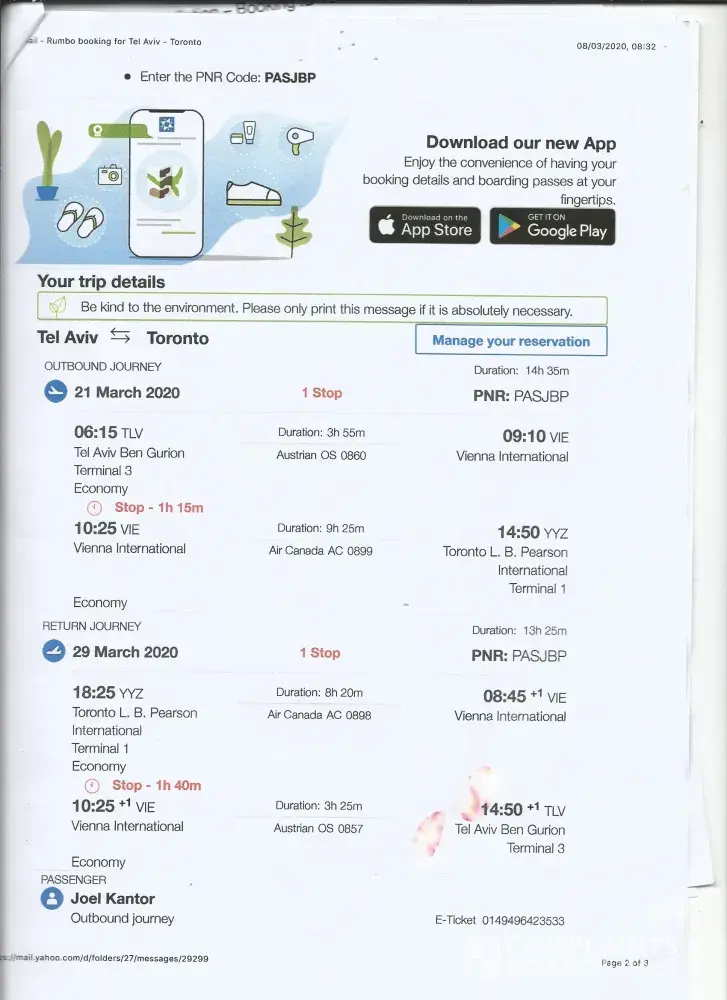 I booked a flight from Tel Aviv Israel to Toronto Canada through Rumbo.com. The flight was with Austrian air and Air Canada and it was cancelled due to Covid on 08/03/2020. I received a Refund and/or Travel Credit email from Rumbo on 08/05/2020 promising to refund 586.58 Euro or give me a travel credit for 738.23 Euro at my choice, They were to be effective between 08/11/2020 and08/05/2021.
