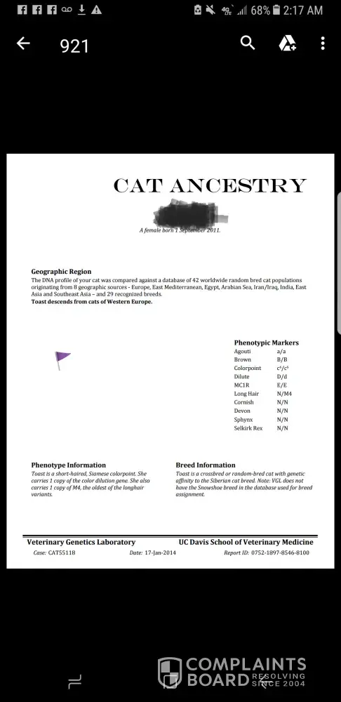 I believe this post was created by a group of truly spiteful human beings that are miserable and have nothing better to do with their time on this earth other than to try and spread their hate and discontent. Beware of liars people, do your research and by all means, have your cat tested if you have doubts. There are several websites out there that will send you kits (similar to ancestryDNA and 23AndMe).