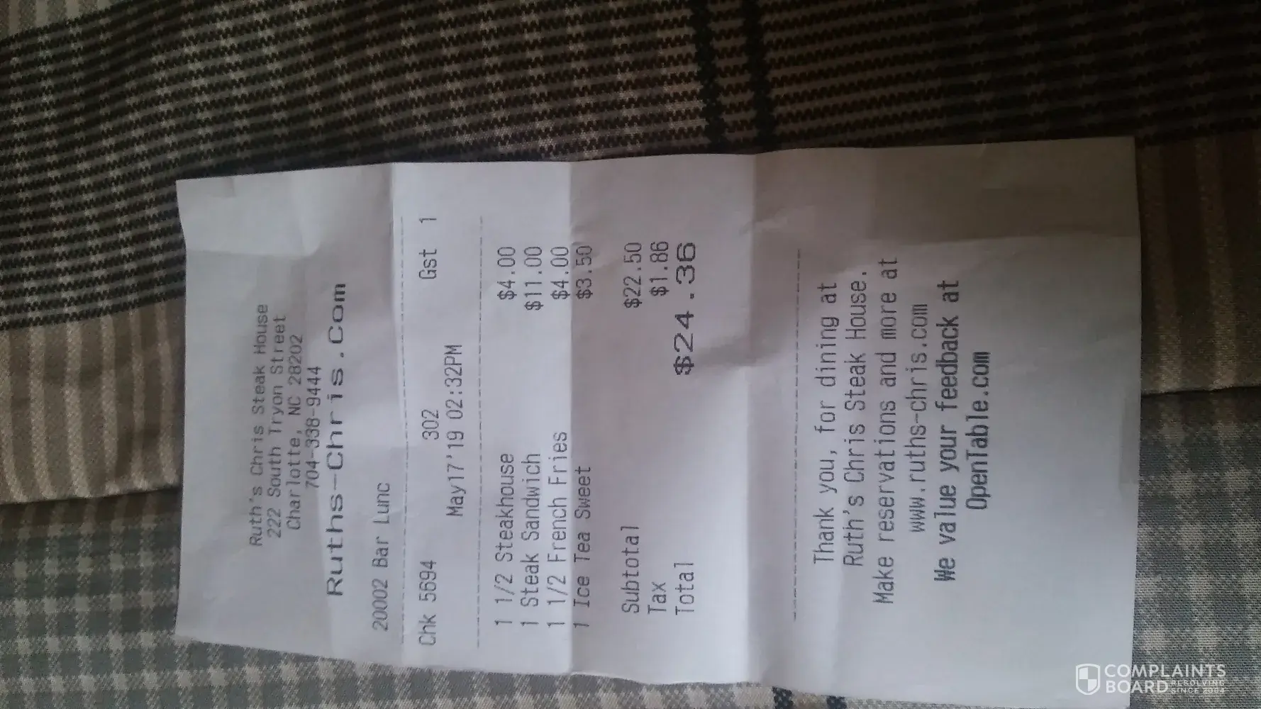 View all Ruth's Chris Steak House reviews and complaints