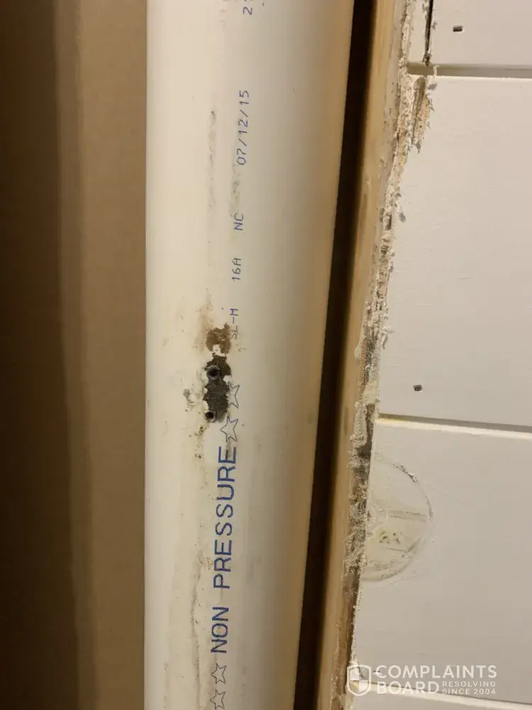 Read full complaintDrilled a nail into a drainage pipe when installing a toilet paper holder.