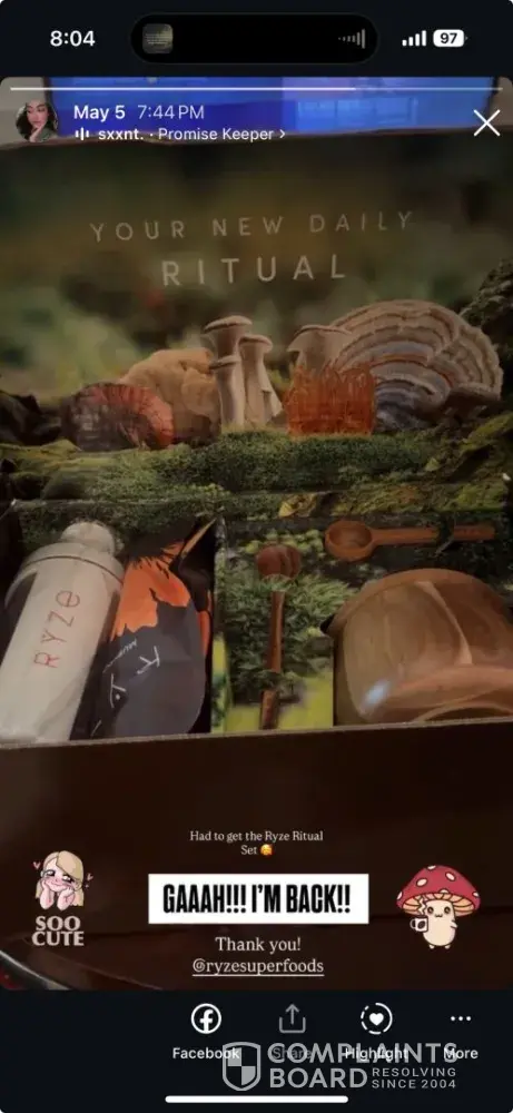 Ryze Superfoods earns a 4.8-star rating from 351 reviews and 96 complaints, showing that the majority of health-conscious consumers are exceptionally satisfied with their nutritious products.