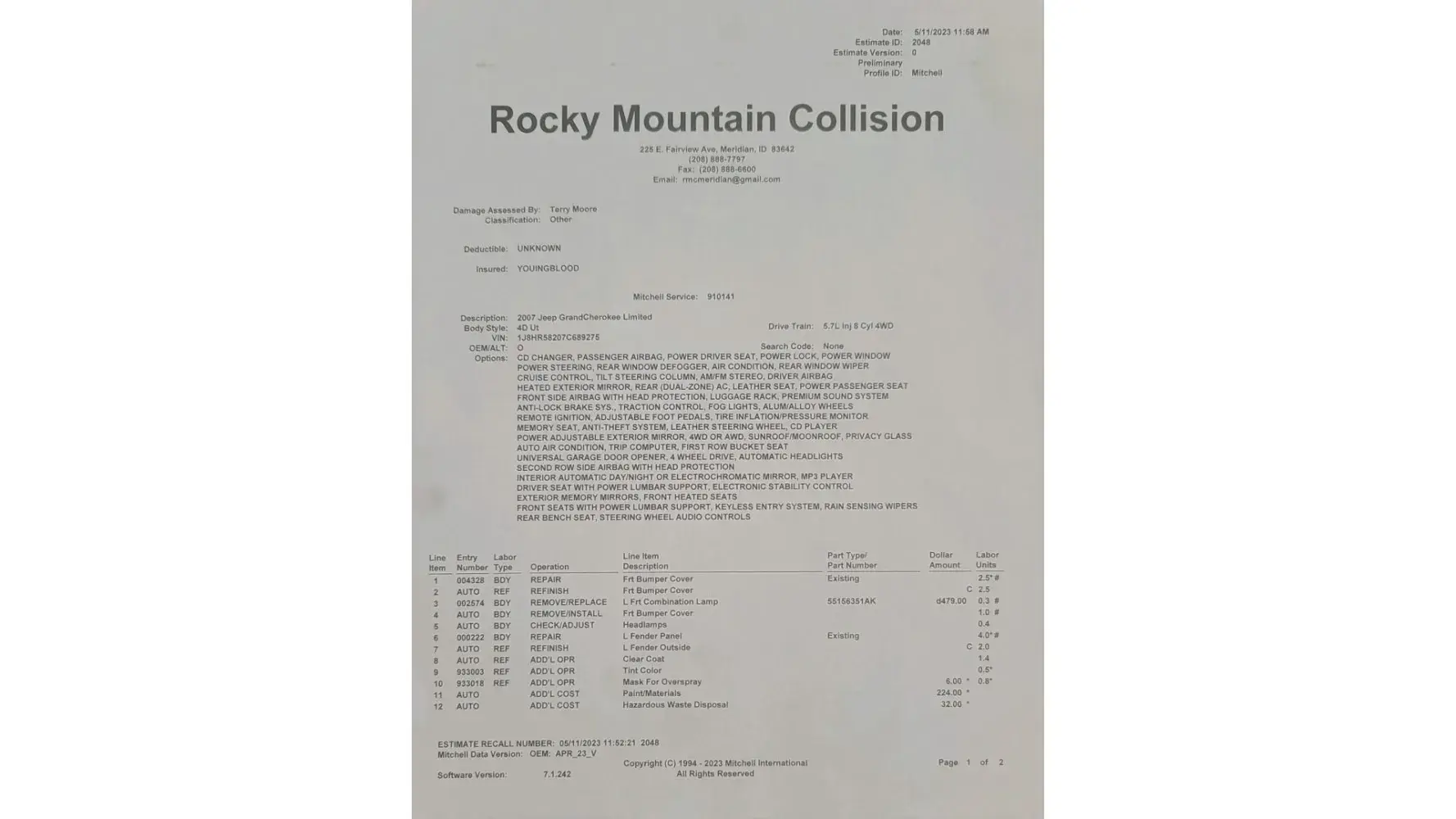 Mr Sheldon, caused a hit and run on April 28th, 2023 between the hours of 3:00pm and 4:00pm MDT. He left a note on the Jeep after he scraped it with his gigantic solid steel bumpered truck. Mr Sheldon told me, my mother n law and my son that a witness saw him do it and told him to leave a note. John seems to have an over 30 year history of denying ALL of his 130+ tickets he has received, including his multiple failure to register/no proof of insurance tickets, habitual speeding, a DUI in which he was sentenced in November of 2020, his concealed weapons charges, aggravated assault charges, and drug trafficking (614 grams of meth) in which he was sentenced to seven years in prison. The Claims Adjuster, Andre H claims it has no bearing on this matter, but it proves a pattern of utter disregard for the law and he does not take accountability for his actions. After I spoke with Mr Sheldon on Thursday May 4th, 2023 I could tell something wasn't right so I decided to do a background check on him. I copied 371 pages of charges. He tried to fight Every Single One of them over a 30+ year span. I sent him a text asking for his insurance information. He immediately called me and was playing the victim card of having a hard life etc... As soon as I asked him nicely for his insurance information, he changed his tone real quick. I have screen shots of my text messages to him (he hasn't answered) and screen shot showing our 8 minute phone conversation. He wanted to speak on the phone because text messages leave a permanent paper trail.