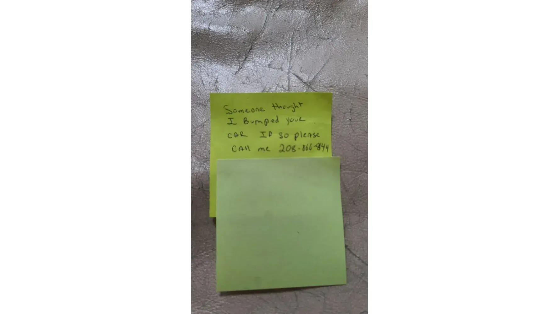 Mr Sheldon refused to give me his insurance information and got very defensive when I asked him for it. He assured me that he would contact his insurance company on Thursday May 4th to report the accident. According to Safeco, that did NOT happen. He was trying to play stupid in regards to what happens if he's found to be at fault. He told me he was afraid his rates would increase. I saw right through him from the very beginning. His nice guy act doesn't fool me. He's been cited 19 times for having no proof of insurance so he knows very well how all of it works. The police officer I spoke with, when I filed the police report on Monday May 8th 2023, was kind enough to give me Mr. Sheldon's insurance information because it's the LAW! Mr. Sheldon seems to think he's above the law but I will not let him get away with this. I'm including the note he left on the Jeep along with his phone number. WHY would he leave a note if this accident didn't happen? Obviously the accident occurred or the witness wouldn't have had any reason to confront Mr Sheldon. I was able to find Mr. Sheldon's name by doing a reverse phone number search. I can see that he tried to write his phone number so it couldn't be read. He hid the "1" in the "8" on the last four digits; but I was able to figure it out anyways. He refused to meet with us that same day. He said he was going to Oregon and would be back Monday May 1st. At which time he claims there was no damage to his vehicle. It would take a tank to damage his solid steel bumpers. I can see the tire marks from his truck that were left on the Jeep. They match perfectly to his tires. I can see the back right tire has been discolored either by scraping the Jeep or Mr. Sheldon trying to remove evidence. I believe Mr. Sheldon tried to parallel park into the tiny space (which he admits), and the back portion of his vehicle scraped the Jeep. He then tried to pull out and re-park his truck and most likely scraped it again. I'm sure an in person investigator can visibly see his truck tires match part of the damage on the Jeep. The witness who made him leave the note saw this happen, watched him park in a different spot, confronted Mr. Sheldon and told him he better leave a note. That's what John did and said to call his phone number if he caused the damage. Which he OBVIOUSLY did! Just like the past 30+ years, he is denying fault and trying to con the system.