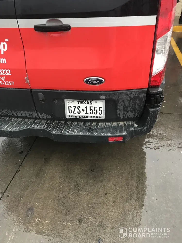 Hello my name is Jairo. I was at a four way intersection with your employee van plates