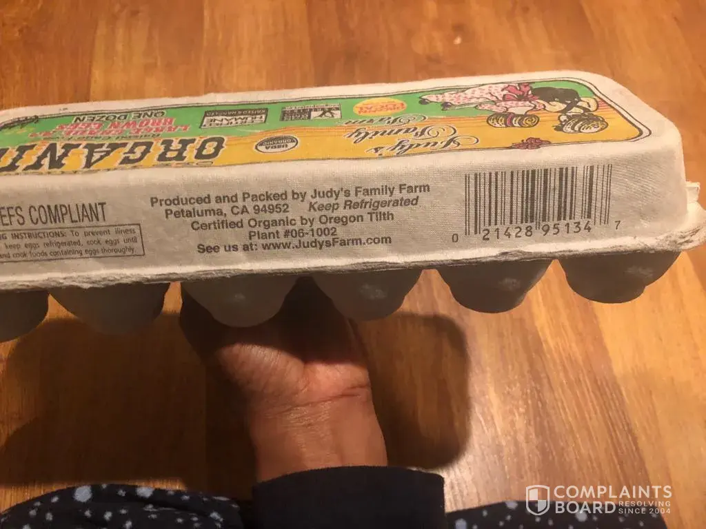I purchased a dozen organic eggs as Safeway 3970 Rivermark Plaza, Santa Clara, CA 95054 on 29th Oct . The brand name was Judy's family farm. (quantity - 1 dozen).