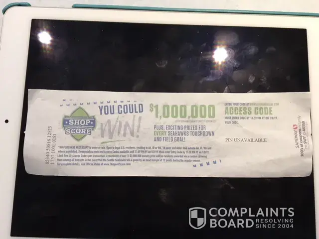 I received a coupon with pin unavailable instead of an access code. I took it back to the store and they told me to call customer service and give them the code on the end of the coupon and they would give me an access code. I called customer service and they referred me to the company in charge of the sweepstakes. In order to get the missing access code, I have the pleasure of waiting 48 hours for an email, taking a picture of the faulty coupon and attaching it to my response to the email, and then waiting for a new coupon to come in the mail. The chances of winning are practically nil, so