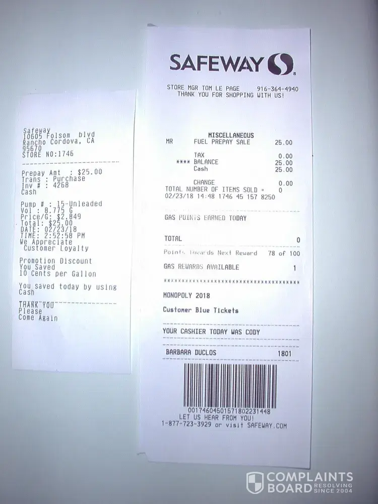 I have retained both the store receipt and the pump receipt as proof of this situation. I wish I had a copy of the website showing the stated points during the past week.