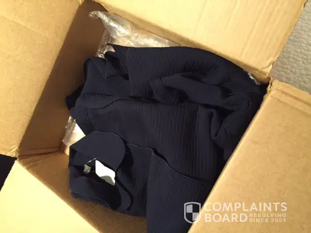 The merchandise was received in poor condition; it was crumpled in the box not on a hanger or in a protected plastic bag or tissue paper. Please see photo for the condition the merchandise was shipped.
