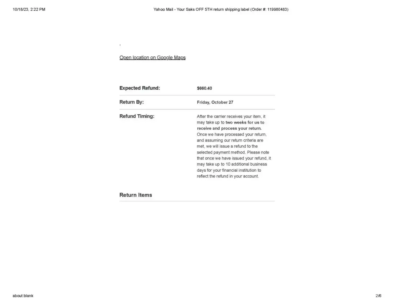 I put an order with Saks off 5th (order #[protected]) order confirmed 7th October 2023