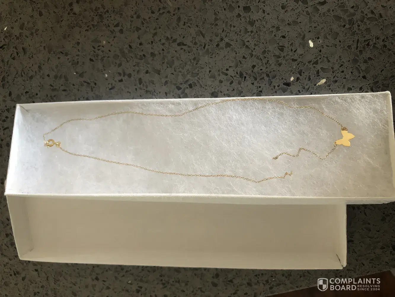 Read full complaint14 k gold. butterfly pendant necklace