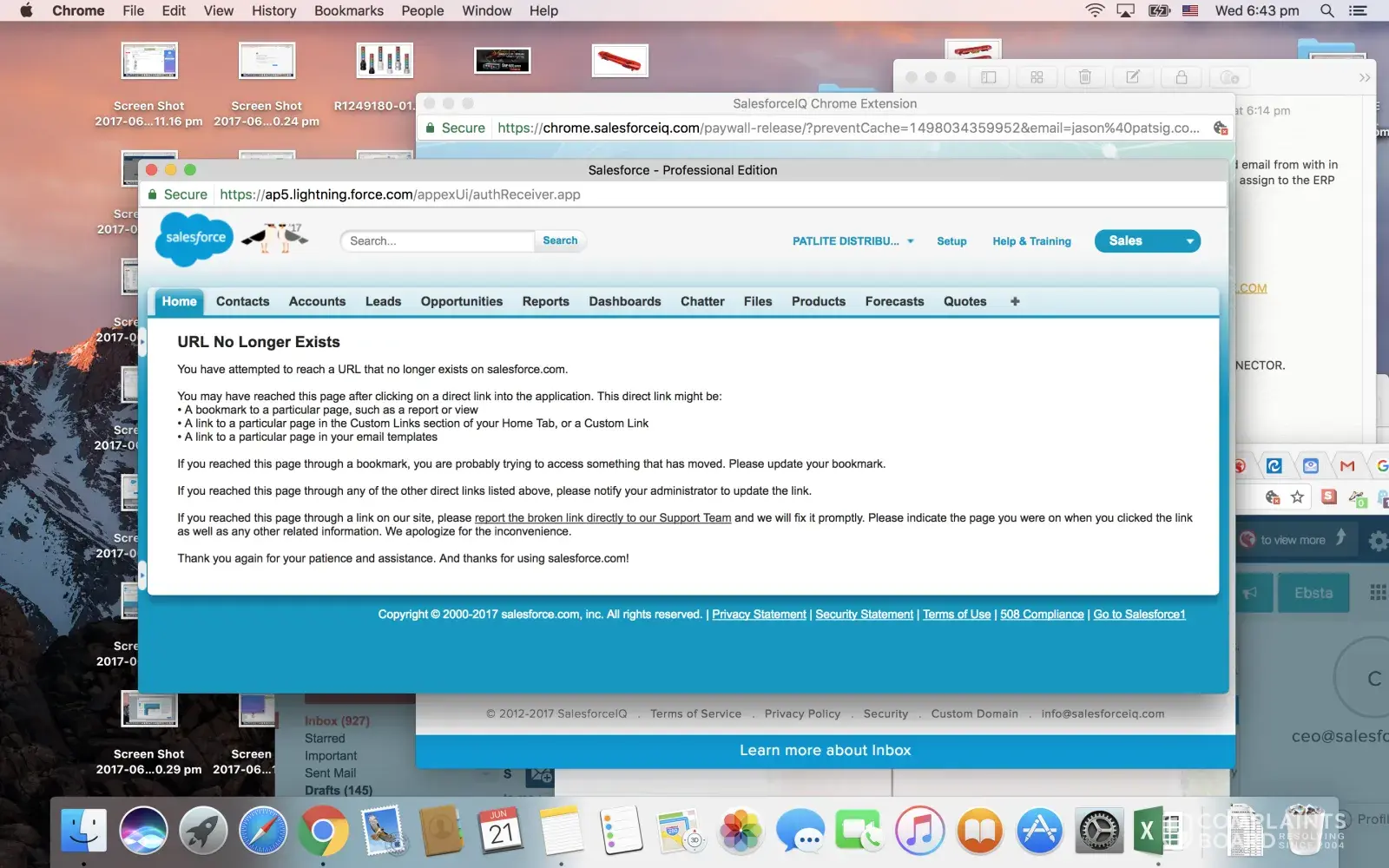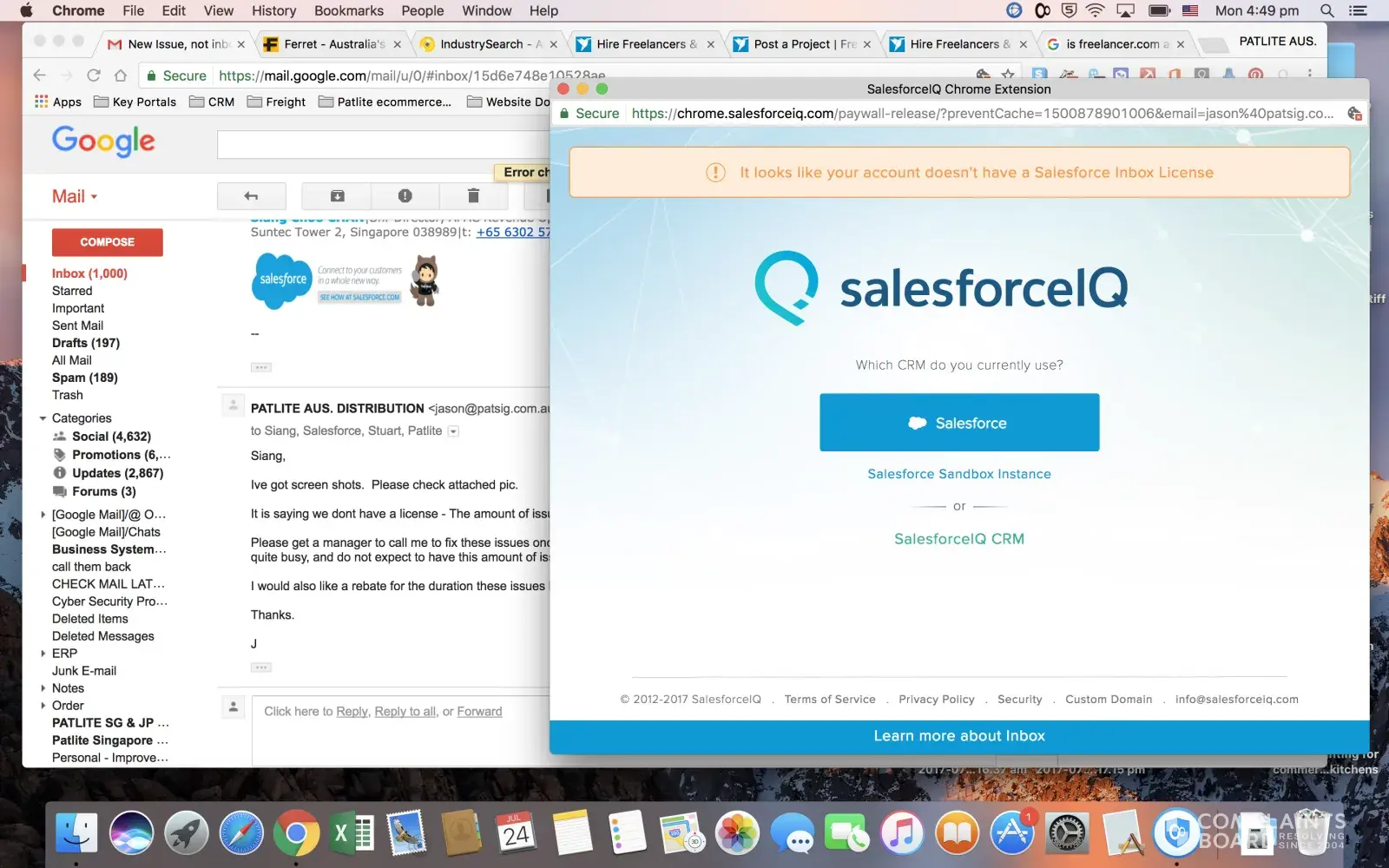 salesforce iq errors, paid license not registering, api app store dysfunctional