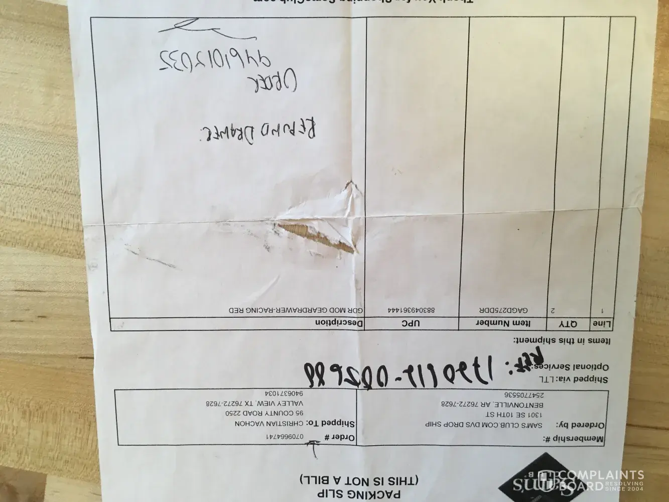 I order 4 things online on may 26th, 2017 (order [protected]). I received on June 12th one gear drawer from my order. On Sam's Club packing slip ([protected]) it said 2 and on seko (delivery waybill [protected]) it said one. So I received and sign for 1. It was damage so I call back and they give me a RA number [protected] and Seiko came pick it up on June 30th on waybill 4407018369R and they send me another gear drawer to replace the broken one. On July 12th I call back because I was still missing one item from my original order, the lady call Seko and found that Sams Club had ship 2 but Seko only delivered one. She was supposed to call me back to find the missing one and she never did. I call three different time after that over 2 month and after I tell my story, they put me on hold to check and at some point They hang up each time.