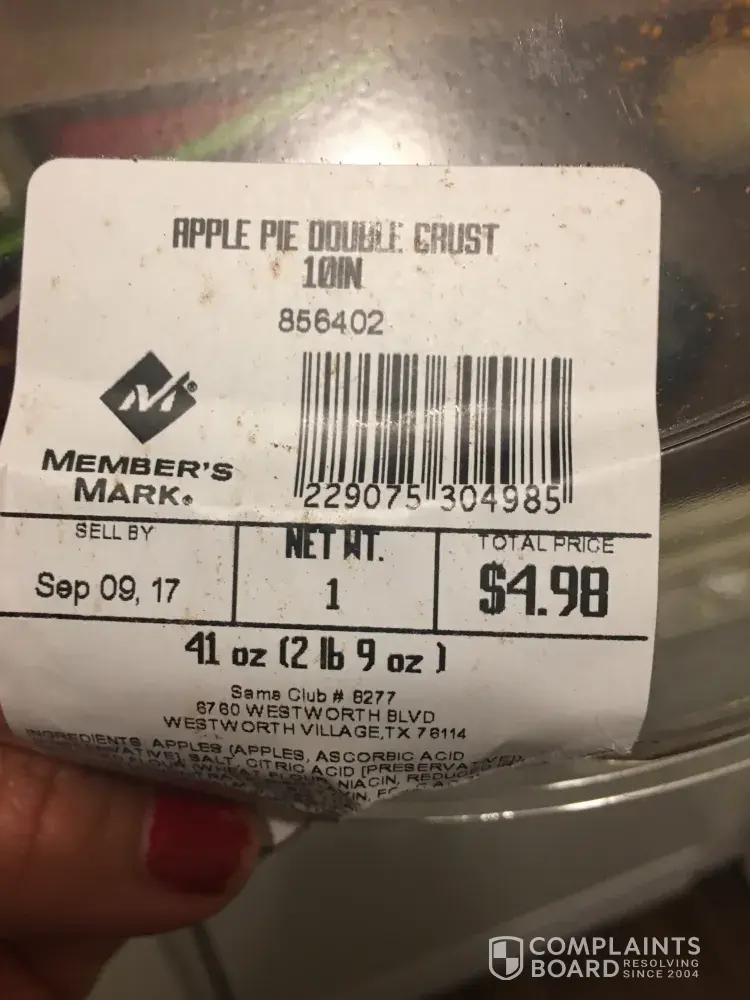 My husband and I bought an apple pie earlier today from your West Worth location and there were little pieces of plastic in the pie. It concerns me that it might hurt somebody and I urge that they be removed from the shelf. My experience at sams is always great, wonderful customer service. Great people and great prices.