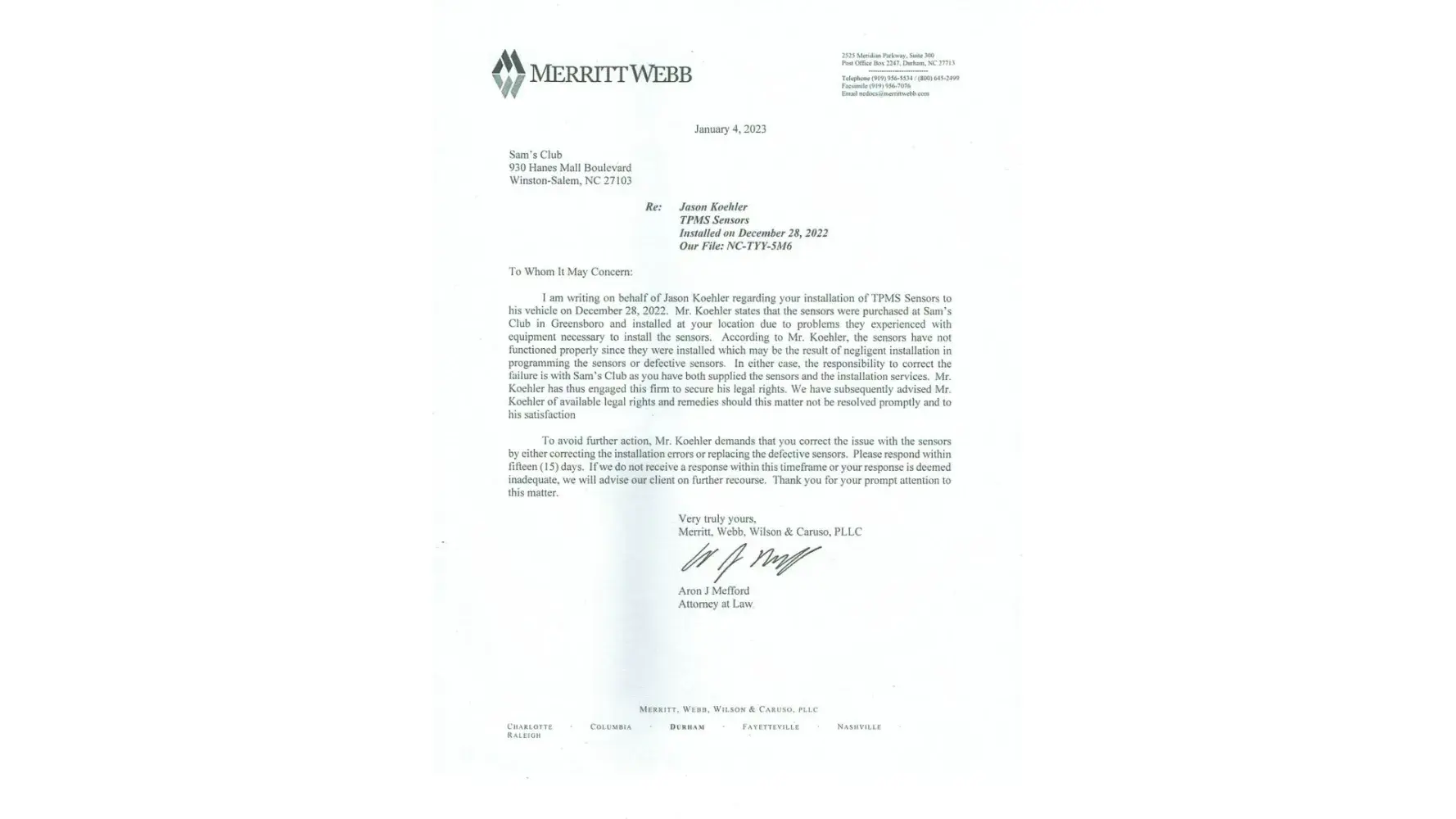 I went in to the Winston-Salem, North Carolina Sam's Club as the machine was down in the Greensboro, North Carolina location for service on our 2015 Ram 1500. They installed the TPMS Sensors but did not program them right and have tried on numerous times to deal with the Tire & Battery Center of Winston-Salem and Greensboro, North Carolina Sam's Club locations to get replacement sensors or reprogramming the TPMS Sensors.