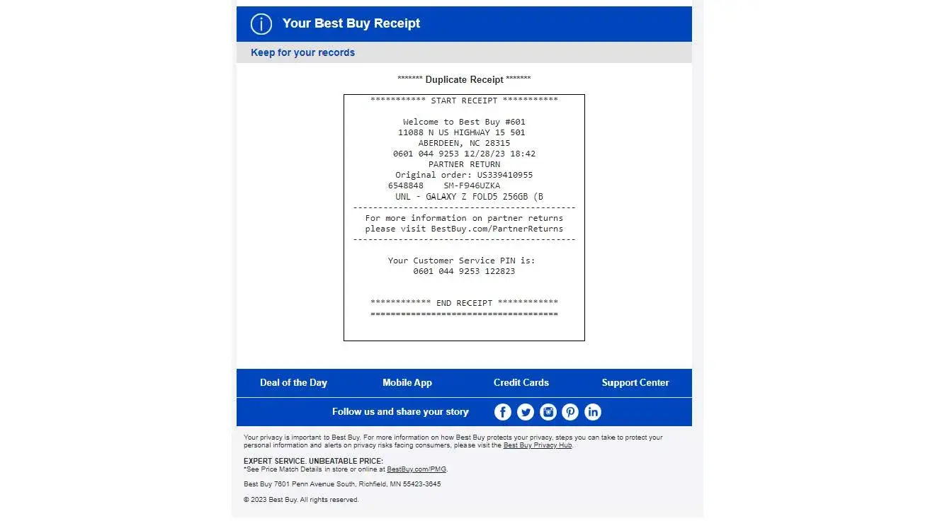 I purchased a Samsung Z fold 5 on Dec 26th. Picked it up from BestBuy on Dec 27th and returned it on Dec 28th. I have not received a refund. I was told that once Samsung Received my return that a refund would be issued.