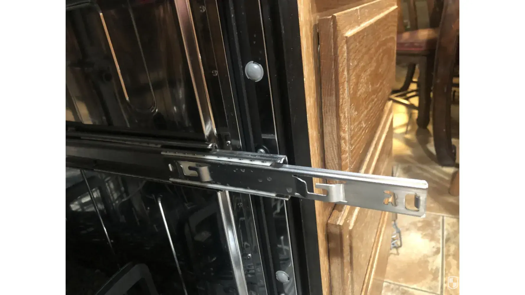 Desired outcome: Repair the slide on the side so that the dishwasher works like it is supposed to.
