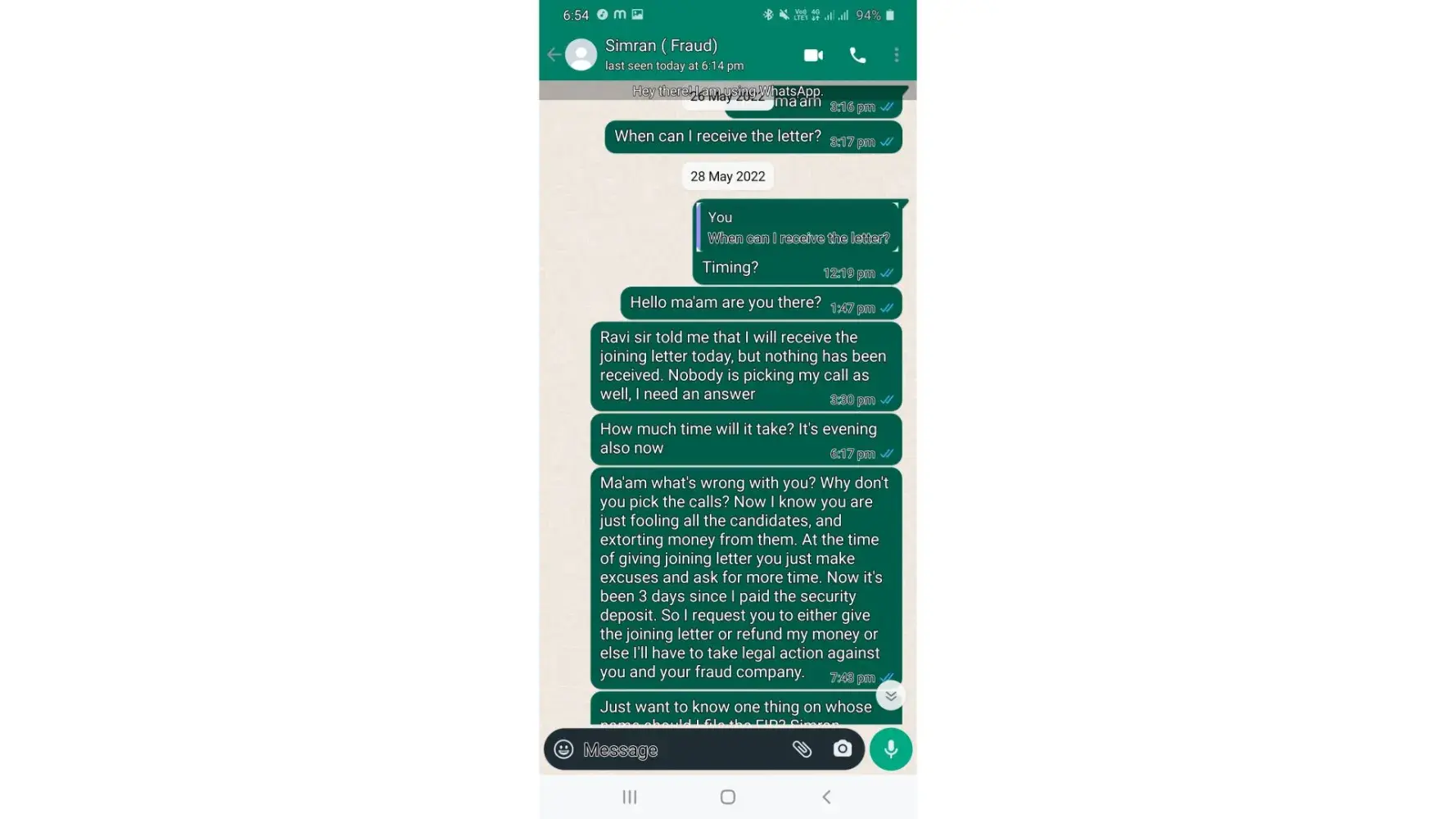 I was called Noida (sector 2) the next day i. e,25th May 2022. After interview I was described the job profile of chat and email process for 17.6k in hand salary (2k for 90%+ attendance;3k for overtime if any;pickup and drop by cab;3 paid leave) 5 days working. I deposited 3k money and still waiting for the letter