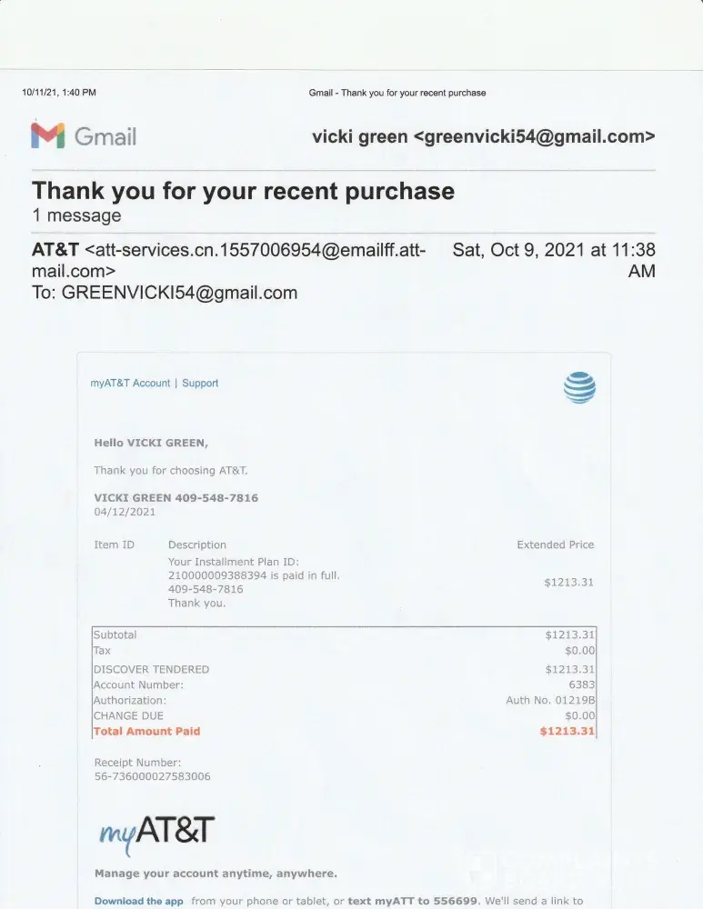 My case file number with T-Mobile is [protected]. My name is Vicki Green [protected]. I sent my Samsung Galaxy Notebook20 Ultra to be unlocked because the phone was not accepting the unlock code in the AT&T store or the T-Mobile store. I used the bar code you gave me to ship the phone in October 2021. I received a call from you stating the phone is fixed. I pray they mean unlocked. Anyway, you wanted a receipt with the IMEI number printed on it. I called Ms. Christina Castro with the AT&T Office Of the President who stated they do not put the IMEI number on the receipt due to infringement issues. She asked me if Samsung would accept a letter from the AT&T Office of the President stating this along with the receipt showing the phone has been paid for in full. I spoke with Emerita badge number [protected] in Tech support who informed me that I would need the Proof of Activation with the IMEI number. She told me that I would have to call back despite the long hold times and text a screenshot to whoever service my call so I can get my phone back. I spoke with Ms. Castro with AT&T who said she would see if she could get the proof of activation with the IMEI number. She wasn't sure because she was NEVER asked to do this before.