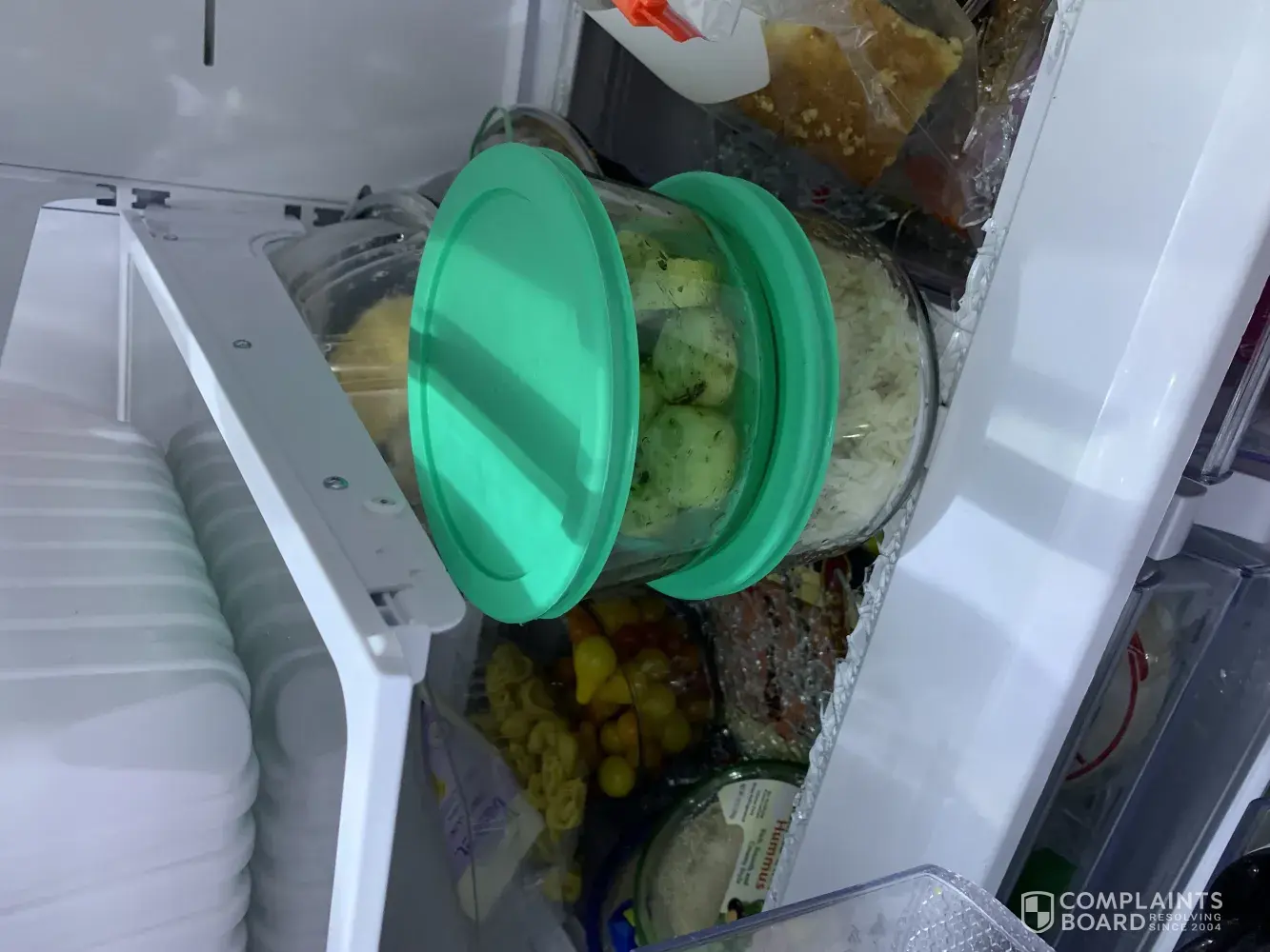 On 10/25/21, the lower glass shelf of the refrigerator spontaneously shattered, there were only a few pounds of items sitting on the shelf (see photos). I was sitting at my desk working in complete silence when I heard it shatter, I had not opened the fridge in about 2 hours.