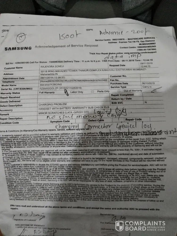 Sir I have already informed Mr. Nelson Pradeep and the staff on the phone and in writing that I shall take the matter to the principal-Samsung Korea to review my case and if not repaired in warranty I shall also put the matter in social media and spread the words with my friends that one should avoid buying Samsung mobile phones if travelling abroad as it does not stand the heat and cold of other countries and seems ignored by the Indian partners.