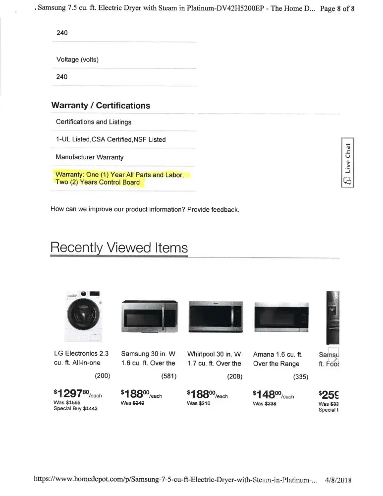 Bought all Samsung appliances for my home. 1 year passes and dishwasher brakes. No help from Home Depot where I bought it and customer service pretty much says too bad past warranty. Had to buy another dishwasher as fixing the old one wasent worth it. Fast forward 2 months later my dyer brakes same story and song. Too bad so sad now I have to pay to have that fixed. It's so frustrating after all the money I spent on buying the products and only a year old and paying more to either replace it or repair it. The repair guy even said even if we had got the warranty they just find ways to say it's not covered. Worst costumer service. Horrible products. Just waiting now for the next appliance to brake. Very unfair for the consumer. Will never buy Samsung anything ever again. Lesson learned.