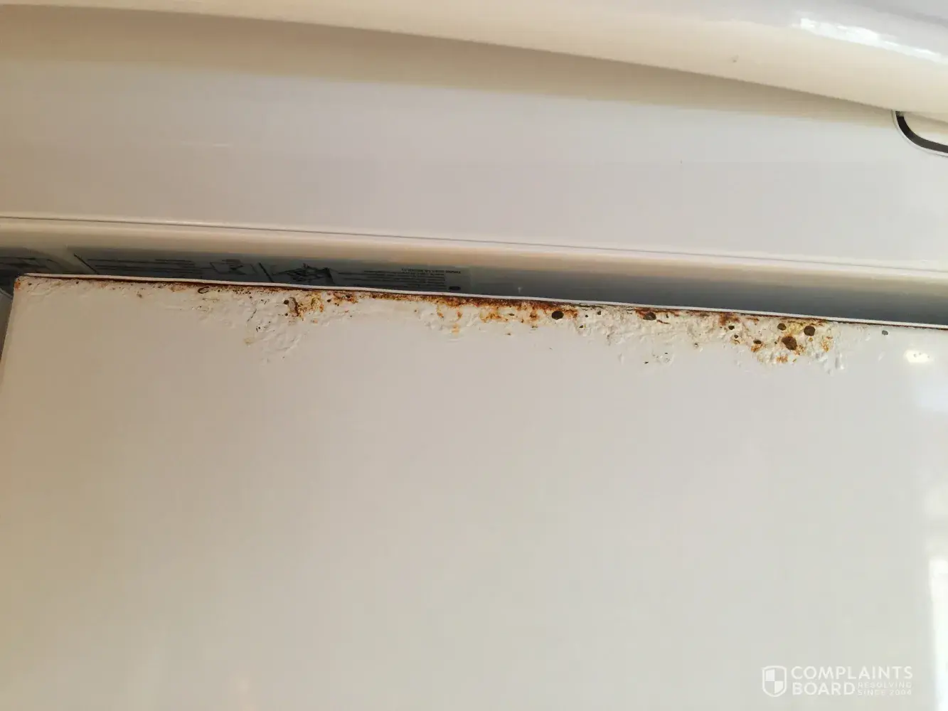 Concern: The door panel that has my water/ice dispenser has rusted. Not only beneath the area where the water/ice is dispensed but also on the bottom of the panel.