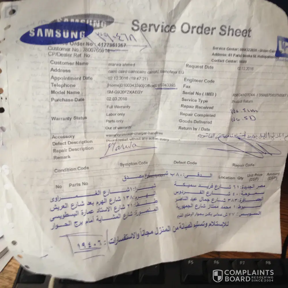 I'm samsung electronics egypt staff we are following our customer's complaints from products & also from the service centers.