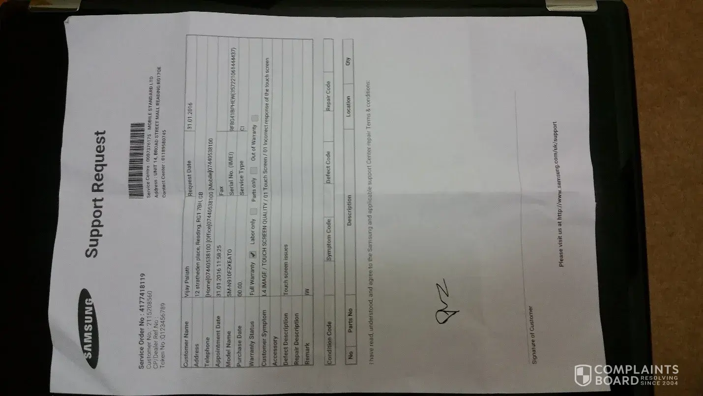 During both instant they confirmed that all testing has been done thoroughly and it should be alright. Attached is the 2 cases I had logged in Samsung Service Centre Reading.