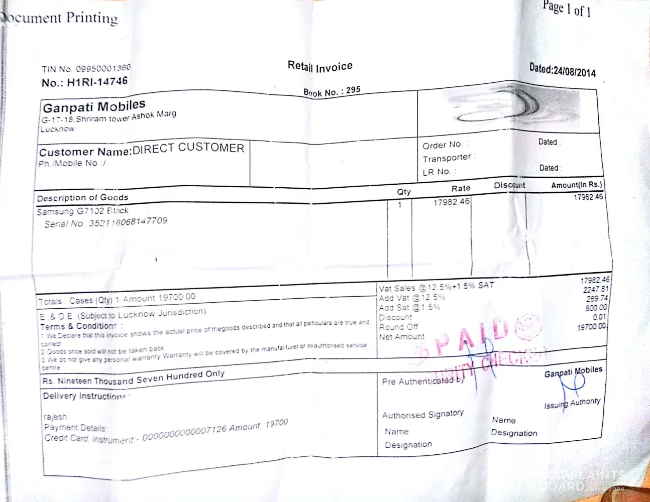 The incident happened like that, i gave one of my samsung phones to your service station for repairing as there was a problem with the screen. I paid 10 k for the same. I was given a guarantee for 1 month but to my surprise it got damaged after a couple of days only. When i complained to this, i was told straightaway that you have to pay for it again as it is your fault.