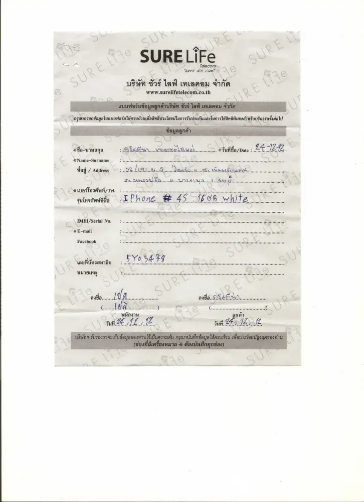 I also most strongly advise anybody from purchasing anything from SureLife Telecom as I see this is not the first complaint about them...I think they should change there name to BADLIFE Telecom as this would be a more appropriate name for them when doing business... Attached the receipt for the extra 4 years Guarantee ( all in Thai I'm afraid but my daughter can read it)