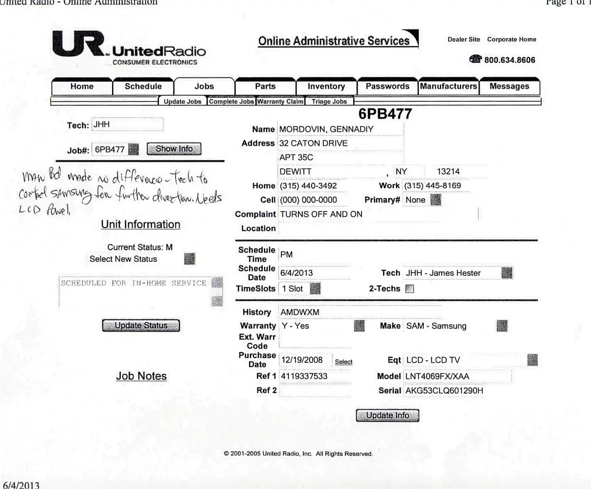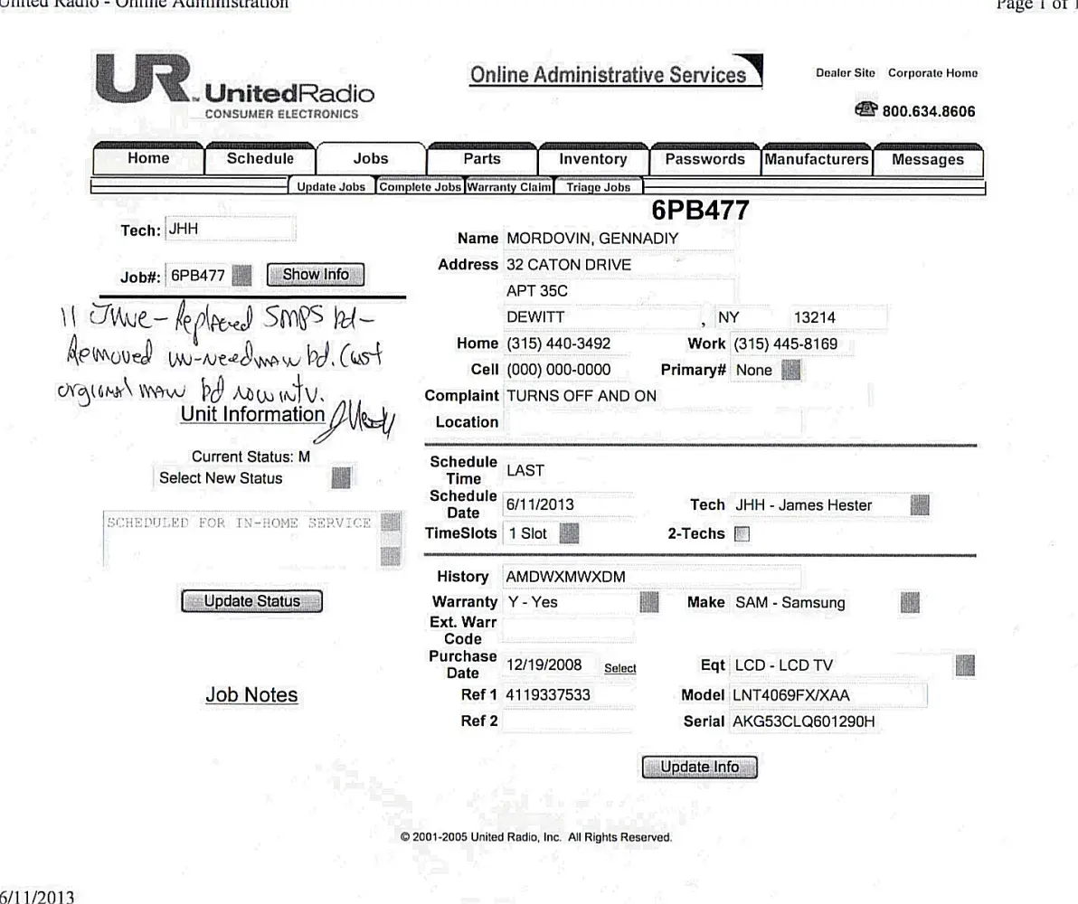 As of press time, we are still waiting for feedback from samsung technicians when they would report for work to attend to our problem.