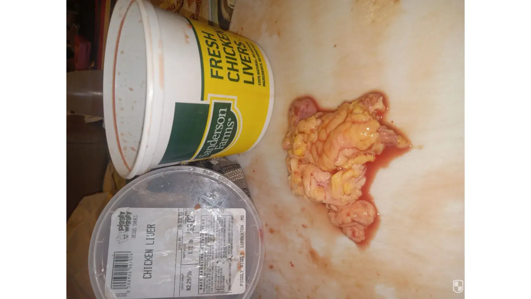Yesterday 9/28/2023 I bought a container of your livers from my local Piggly Wiggly. Right on top was a big chunk of fat. There was quite a bit of lose fat in the container. I buy livers on a regular basis and there is getting to be more and more fat and junk in the containers. Also more of the livers look like they were run through a tenderizer they are all tore up. I have included pictures of each.