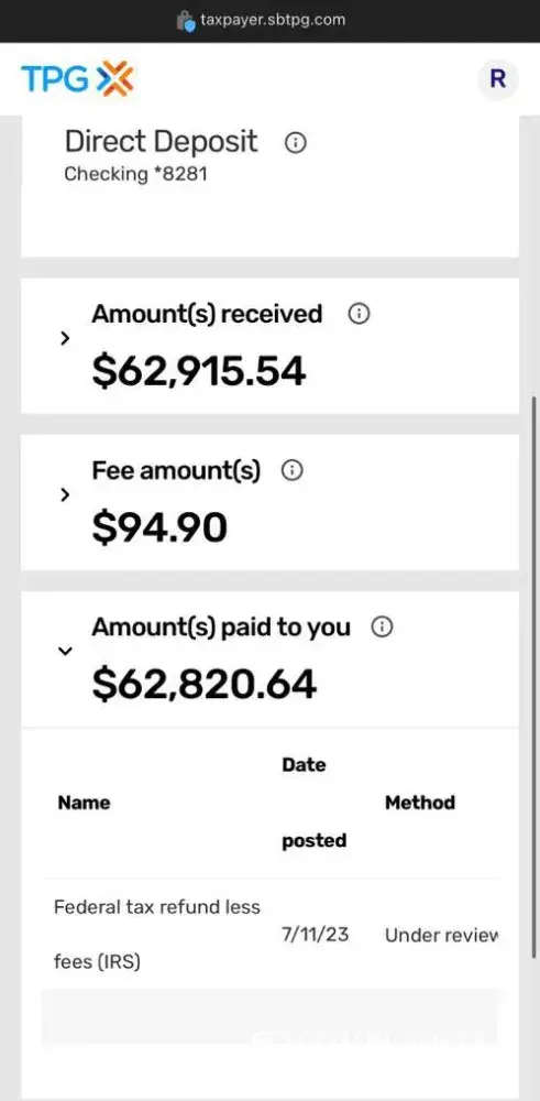 I filed my tax return June 27th 2023, it was accepted and says issued to be sent out by aug 9th 2023 from the IRS to my bank account. I never received my refund and was told that it was issued to Sbtpg bank august 8th 2023 instead. So I checked with Sbptg online bank and it’s says Funded in green with the dollar amount but also says “Under Review†and has been saying it’s for 3 entire days now. If I was suppose to receive my refund that date then why is Sbtpg holding my tax refund?