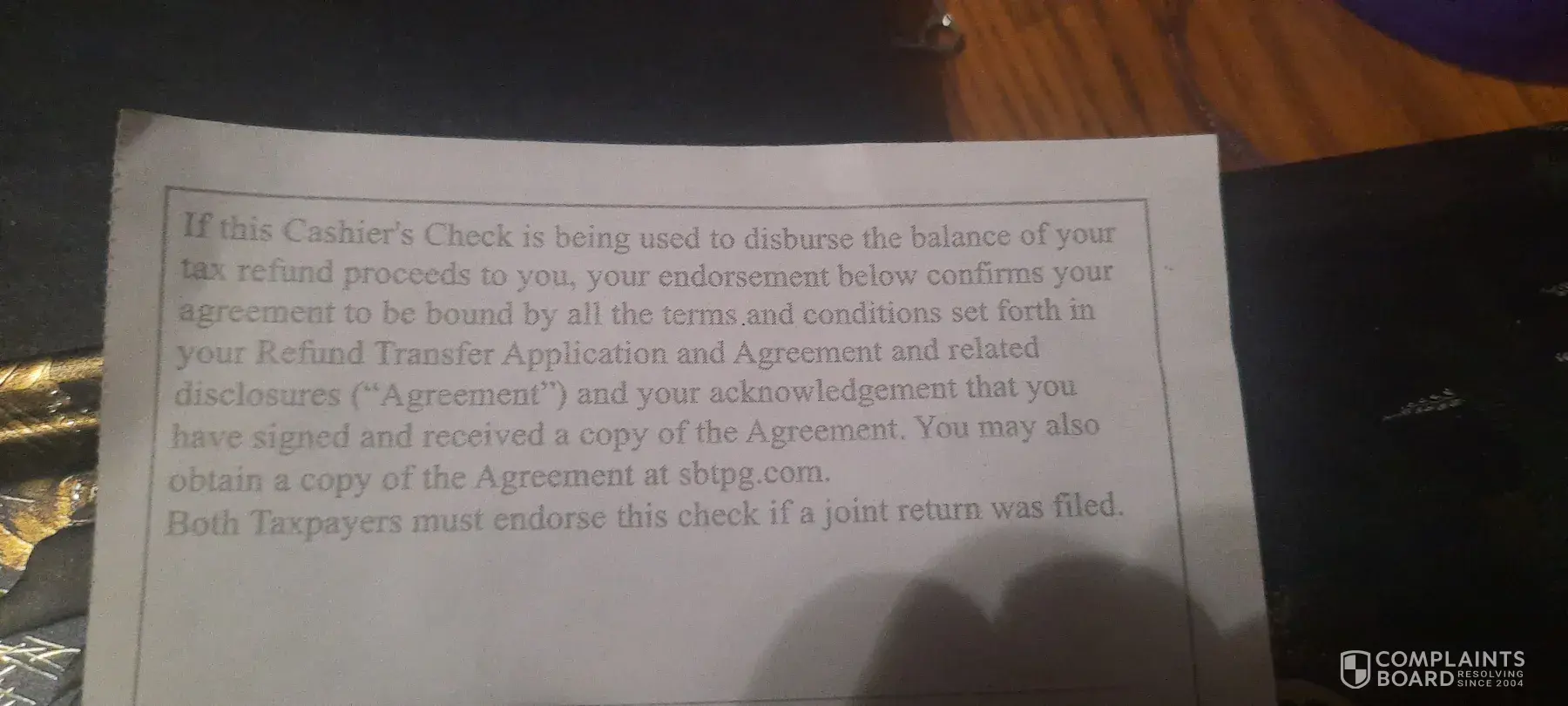 I was issued a tax refund check illegally from tpg for $1000 less than the irs sent originally. On the back of the check it says that signing is a validation of their terms and conditions that is avaliable on their website. It is not on the website, and they will not reply to my emails. I have a feeling that endorsing the check means it can't be disputed. I would like to dispute the amount with the irs.