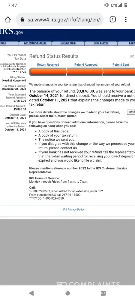 in November you said you had sent it back to the IRS when I spoke to someone online concerning this, they email me they said they got sent back December 3rd now I'm going into a whole nother taxis and and you guys still have not sent my funds to the IRS and again I'm waiting as well as they are and my refund was sent to you all and October so I've basically been waiting since October to get my money when you guys got yours and this is going on too long now because believe it or not it's almost 2 years and I'm still waiting for taxes from 2020 I just want my money that's it and then when I called before it went straight to a message that said my refund was returned to the IRS when I call that same number today to 021722 it said that my information didn't match what you have on file you shouldn't have any information on file because you were supposed to have sent my tax return back in October when I asked Dan in November when I asked then in December when you guys said you sent it back it is now almost March and they still have not received my funds back from you all to give to me