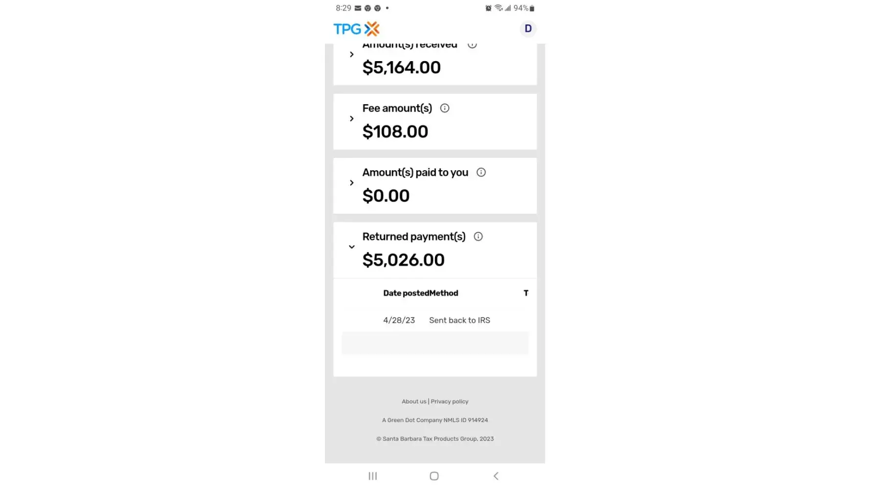 My refund was rejected by greendot because they closed my account that I had no knowledge of it being closed. And the funds were sent back to sptg and they never sent me a check or anything.