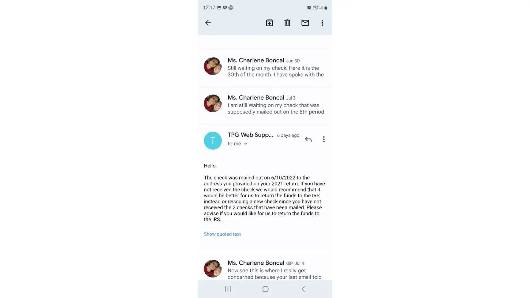What is ya email I been going through the same thing .. my check was to be mailed to me on September 7th
