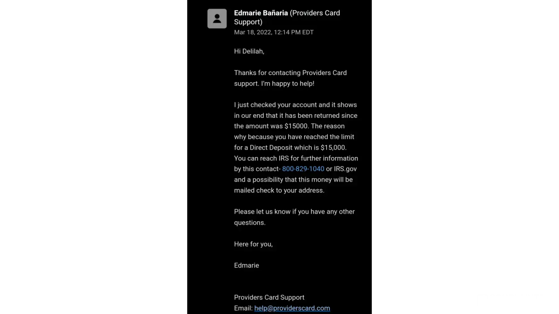 Below is the lame excuse they tried to send me which is very insulting. I have enough sense to no that if any of this was an issue the IRS would have not approved my taxes for deposit. This is definitely some type of scam and the only other option is seeking legal help or else we all have just let this company take our money.