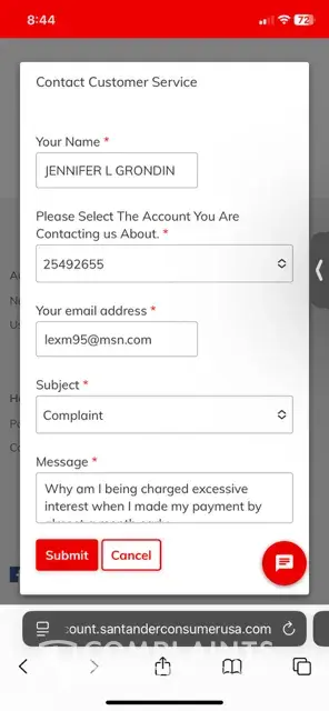 Desired outcome: Analyze my account Check all the interest I have paid I should have been a part of the Santander Class Settlement I was in foreclosure when they approved my car loan I don't owe all this money The numbers don't add up Santander is a scam