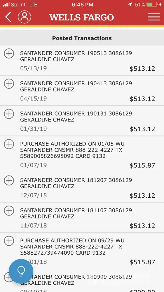 Santander Consumer USA car loans account 9645628