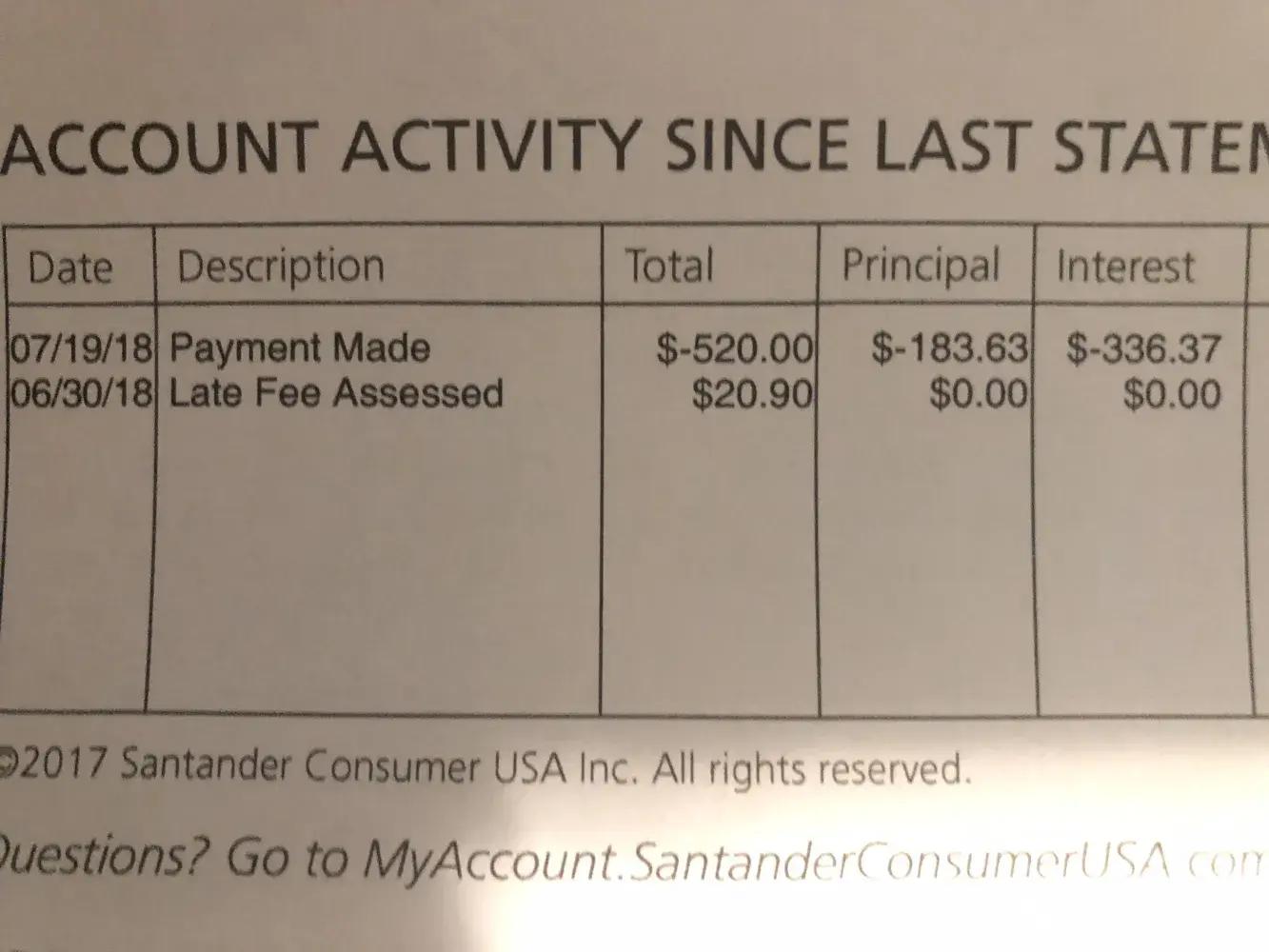 I been told if I just paid 200.00 a month interest i would not be charged additional interest shortly i became disable after obtaining automobile in Hope's of keeping car I was told year befor last that when was anke to give more I did 3 payments at once meant nothing. I still owe next month after doing that and did not inderstand how s that possible. Santander has or should be looked into. The FTC.need to be contacted and.forced to look at Santander auto loans or are they being paid off. They are predatory lenders.The Ftc.is not helping