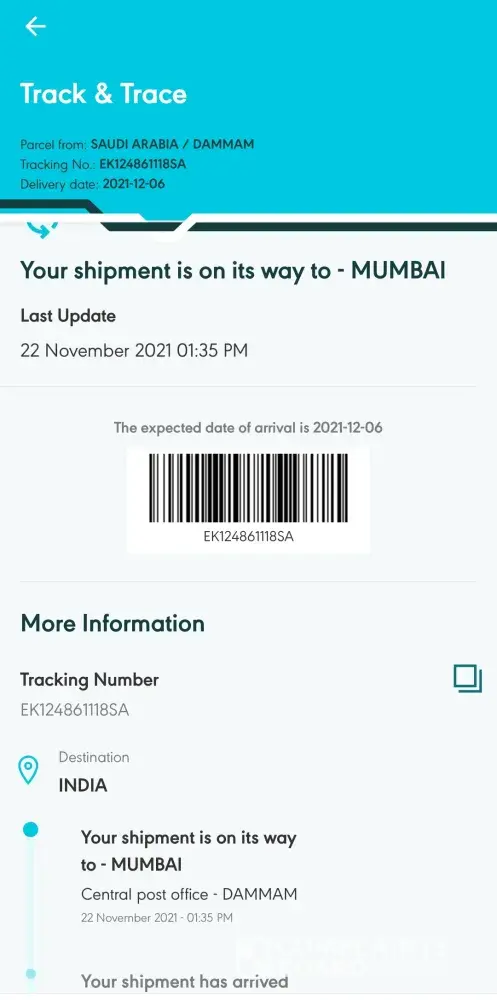Sir, I have sent my parcel through Saudi express post to India from ØÙŠØŒ الشارع الدائري، Al Huwaylat, Al Jubail 35718. But in tracking last update it's showing only 22-11-21.. Right now it's not showing and update. Please update my tracking update... My courier tracking number is EK124861118SA. Please do the needful. I will be very thankful to you