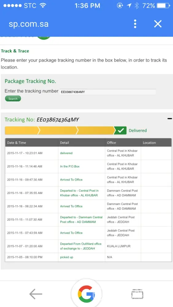 parcel not received. saudi post
