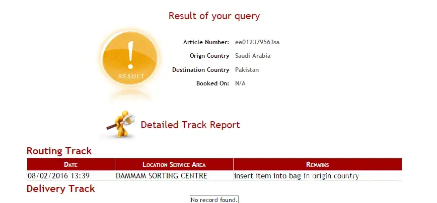 Posted on 2016-02-04, at hafr elbaten central post office hafr al batin, eastern region, saudi arabia still document is held at dammam central post office - ad dammam tracking number of the courier: ee012379563sa receipt number of the courier: [protected]. no reply no action to date on my complain. so I request you to please look into the matter because it is very important documents. and deliver the document at earliest. thanks & regards hafiz rashid