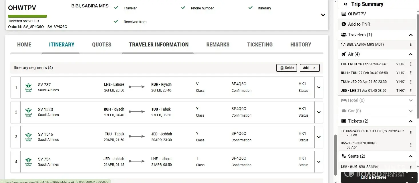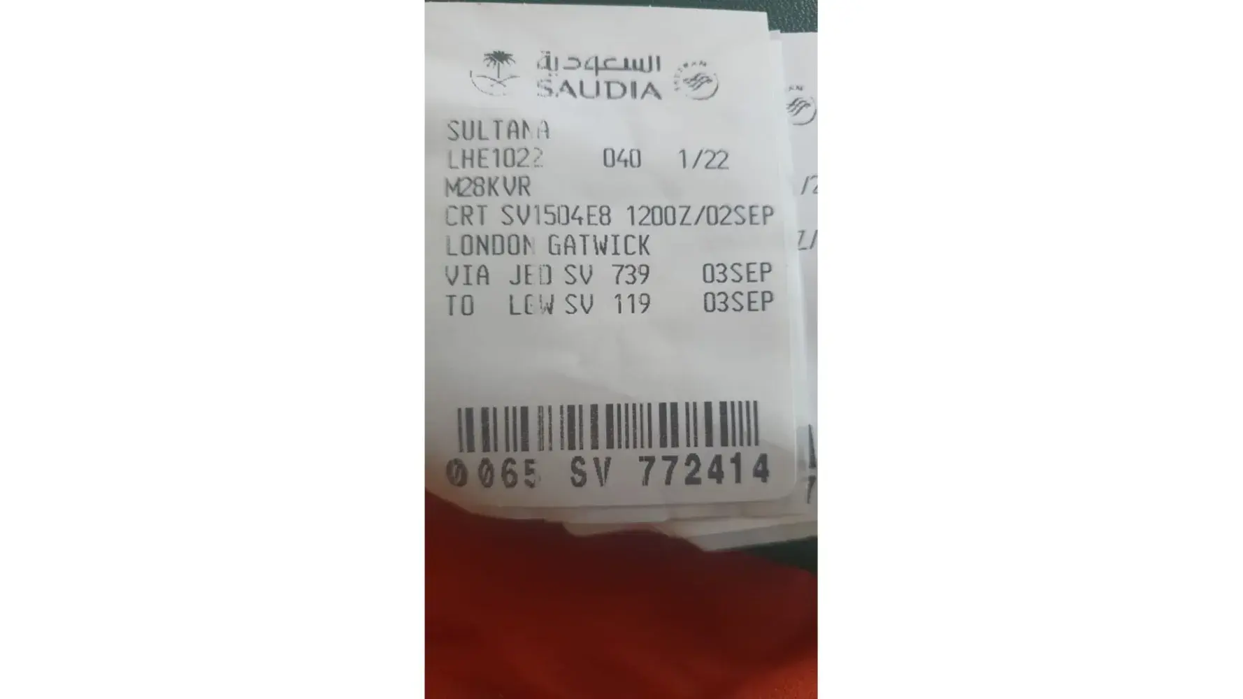 I tarvelled from lahore to London by Saudi airline on 03-09-2023 via LHE-JED SV739 and JED-LGW SV719.