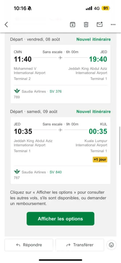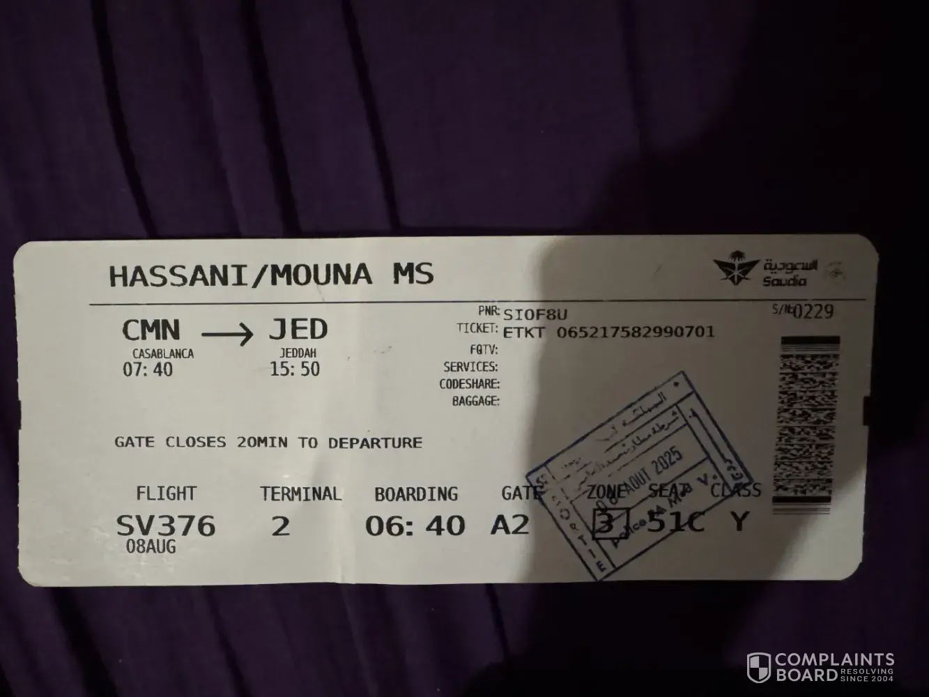 Dear Saudia Customer Service, I hope this message finds you well. I am writing to formally express my concern regarding a significant delay on my recent flight with Saudia. My itinerary was as follows: - Flight: SV376 – Casablanca (CMN) to Jeddah (JED) – Date: 08/08/2025 - Final destination: Kuala Lumpur (KUL), via Riyadh (RUH) The initial flight...