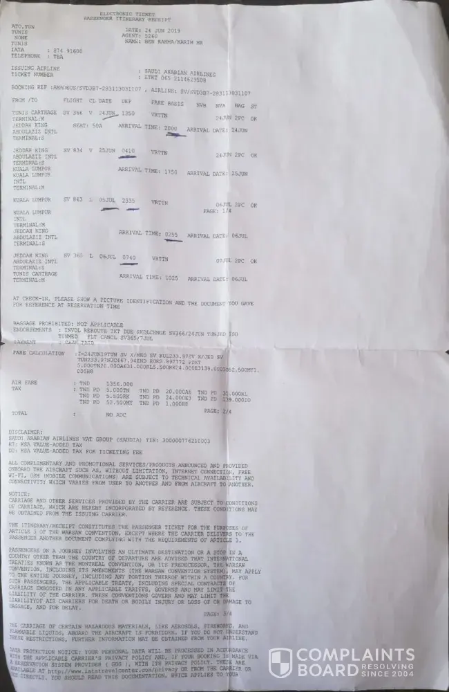 I have booked a flight ticket on the 6th of August 2019. Booking number is LL2U2Y-[protected]. STATUS: paid. An online payment via my credit card. Date of departure is 7th of August 2019 JED 07:40 to TUN 10:25 economic class. Flight number SV365. Passenger name : Aymen Souissi - [protected]@gmail.com.Paid the total amount of 385.98 USD one way flight.