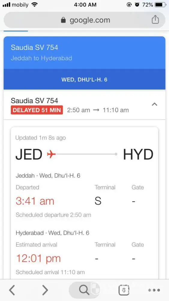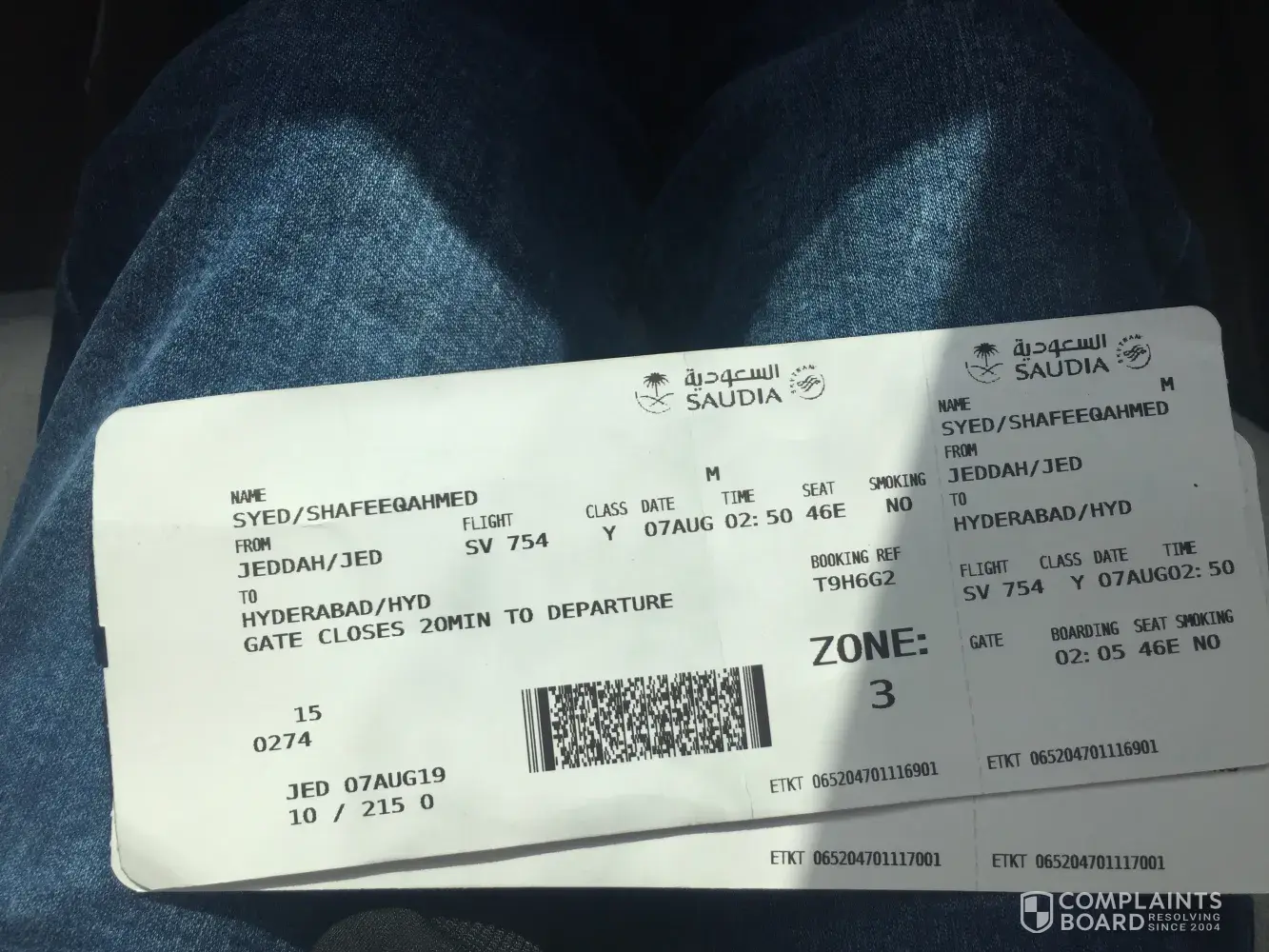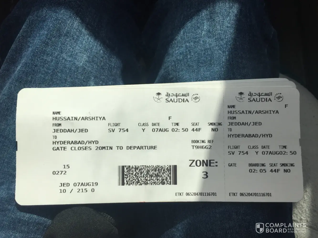 With due deference and reverance I would like to inform you that we had booked Saudi Airline ticket before 2 months bearing fligt # SV 754 from Jeddah to Hyderabad scheduled on 7th, Aug, 2019 at 2:50 am.